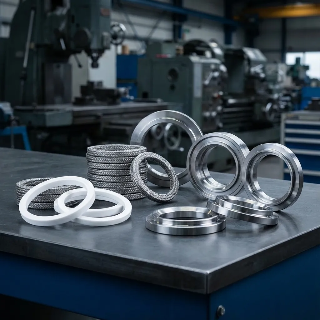 Spolehlivá těsnění pro bezpečný provoz ventilů a klapek. Zahrnuje těsnění vřetene, dělící roviny i sedla kulových ventilů.